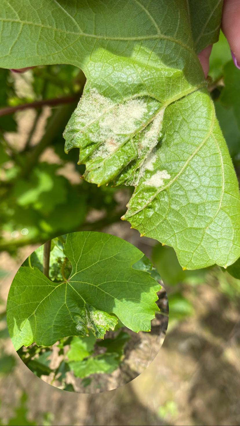 Tokom pregleda zasada uočeno je prisustvo simptoma pepelnice vinove loze (Erysiphe necator) na 3-20% biljaka. Simptomi su izraženiji u zasadima gde nisu redovno sprovedeni tretmani u cilju zaštite, pa je zabeleženo i do 50% površine grozda sa simptomima.